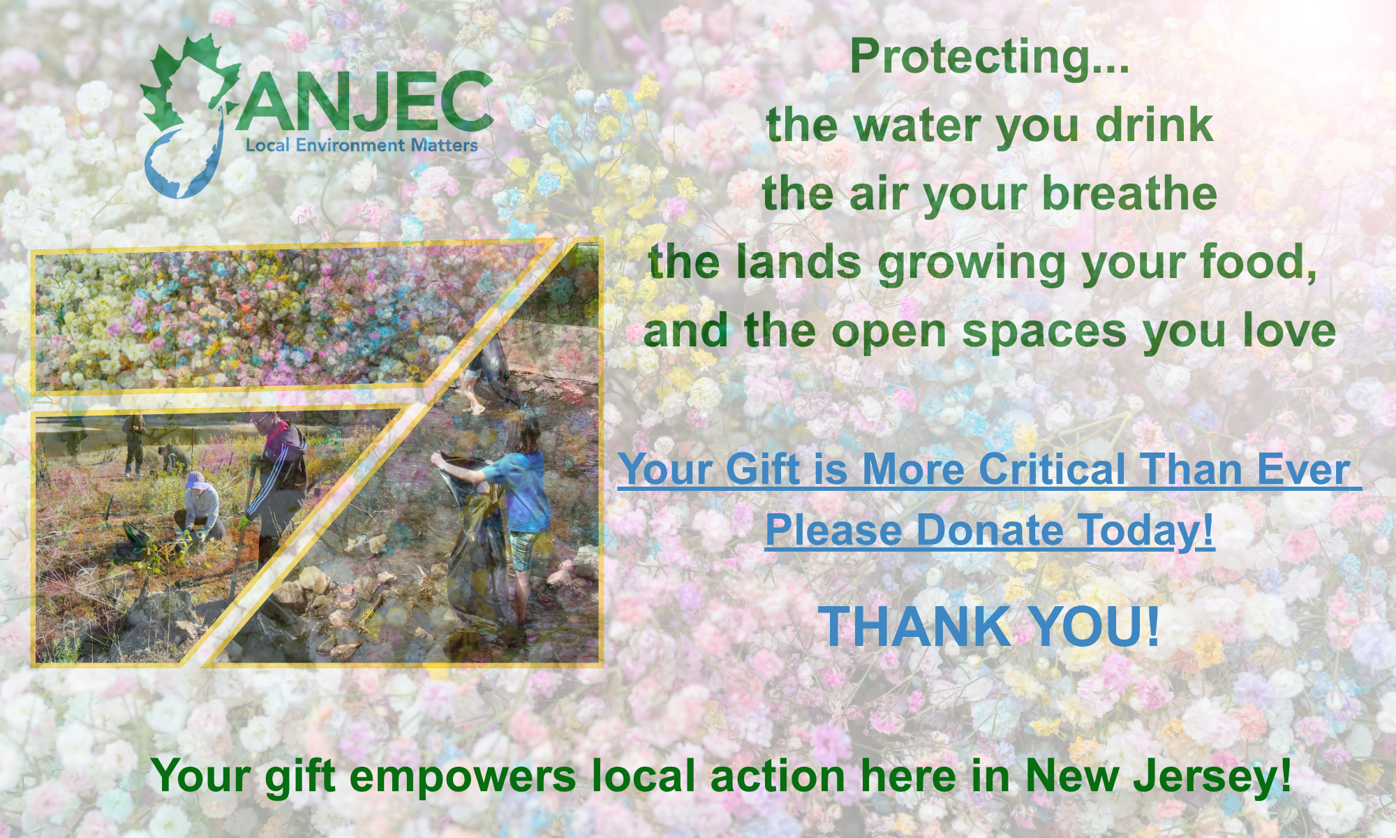 To donate, simply click on the “donate” button. You can choose a one-time donation or set up a recurring contribution, whichever fits your budget and preference. Your support ensures that ANJEC can continue to educate, engage, and empower communities across New Jersey.